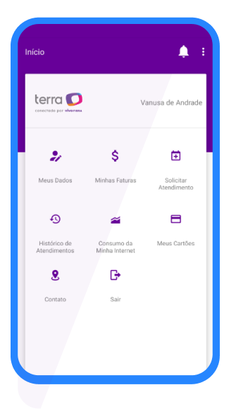 Primeiro você irá receber um link via e-mail e criará seu cadastro utilizando o mesmo CPF/CNPJ utilizado na contratação da sua internet Terra Fibra.